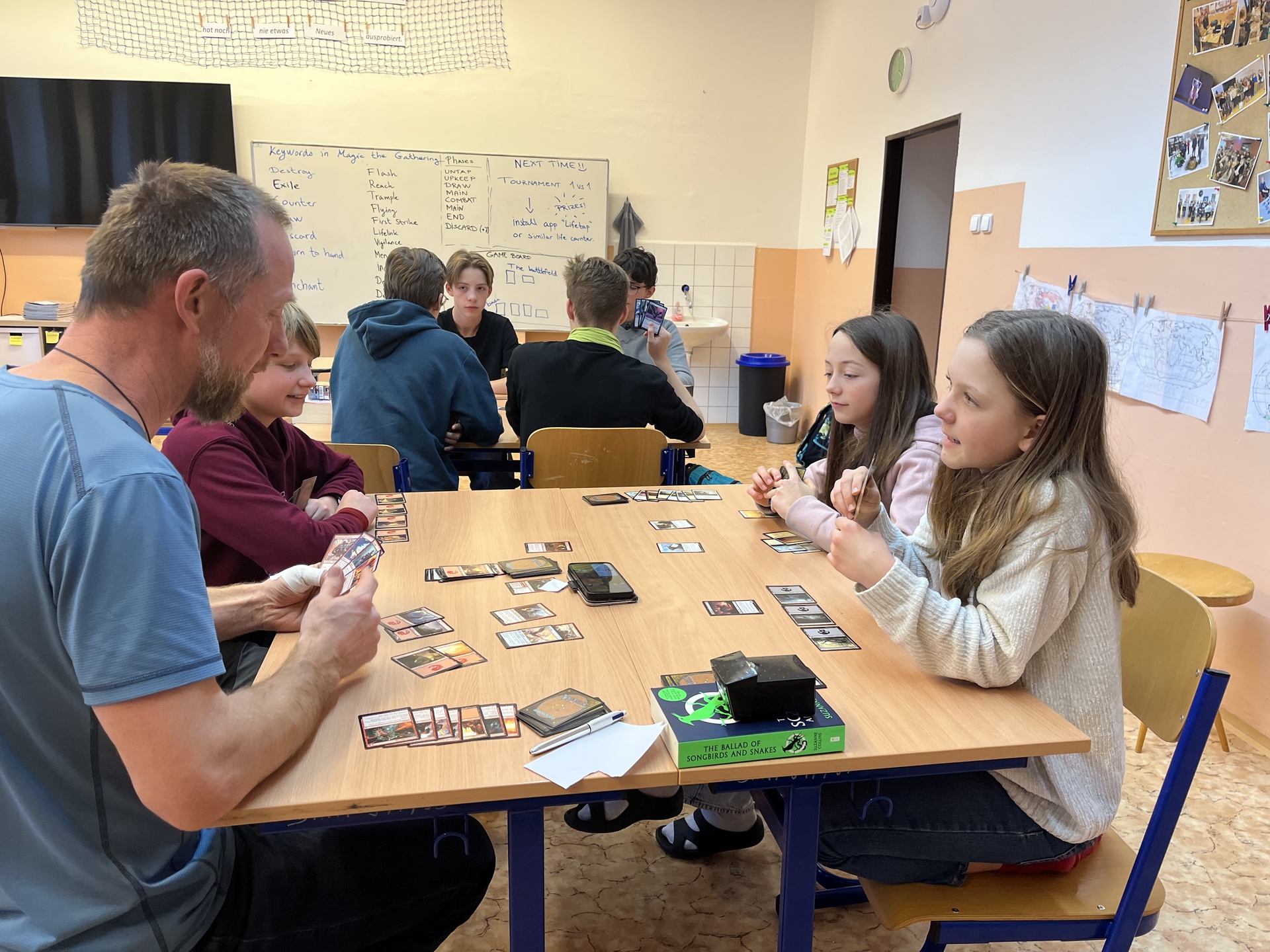 We have a selection of exciting genres: Card games, Boardgames, Roleplaying games! You will be taught the rules in a calm and cozy atmosphere, learning English at the same time.