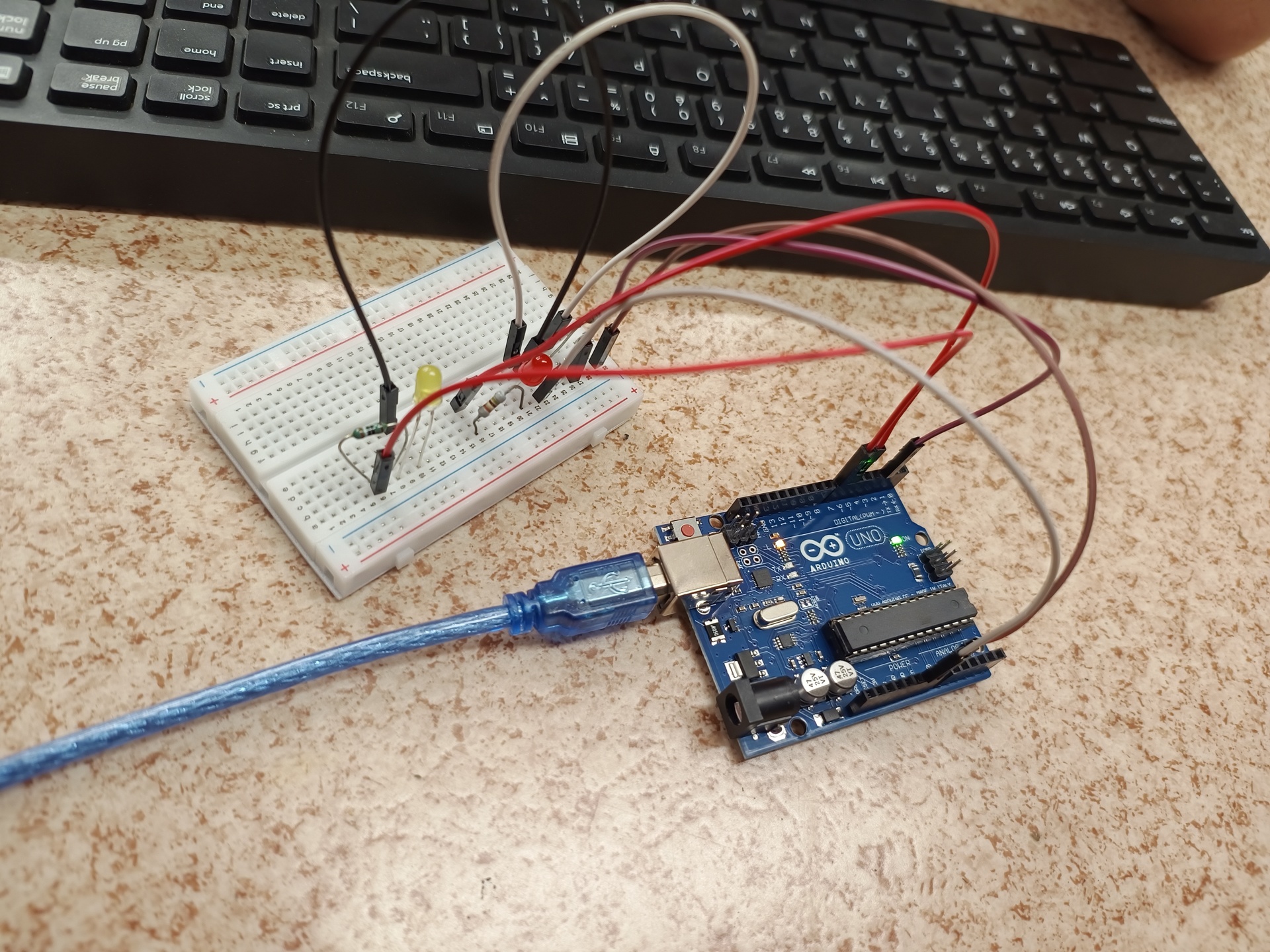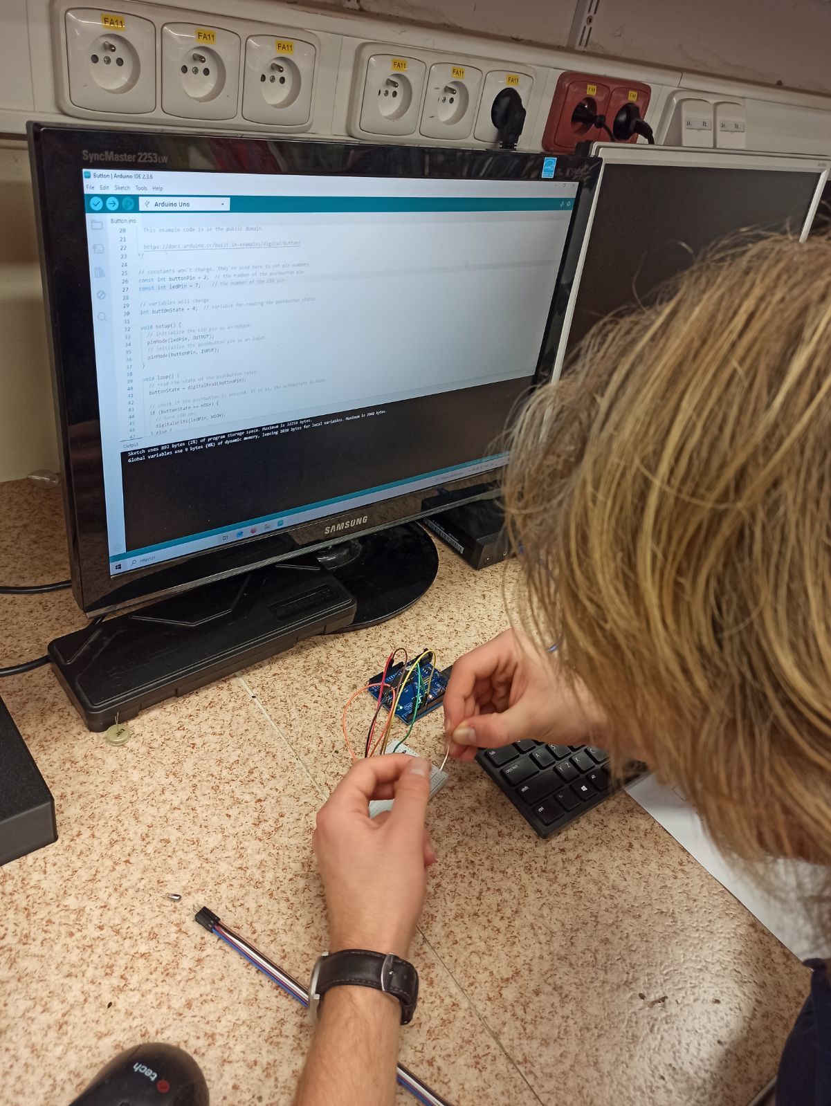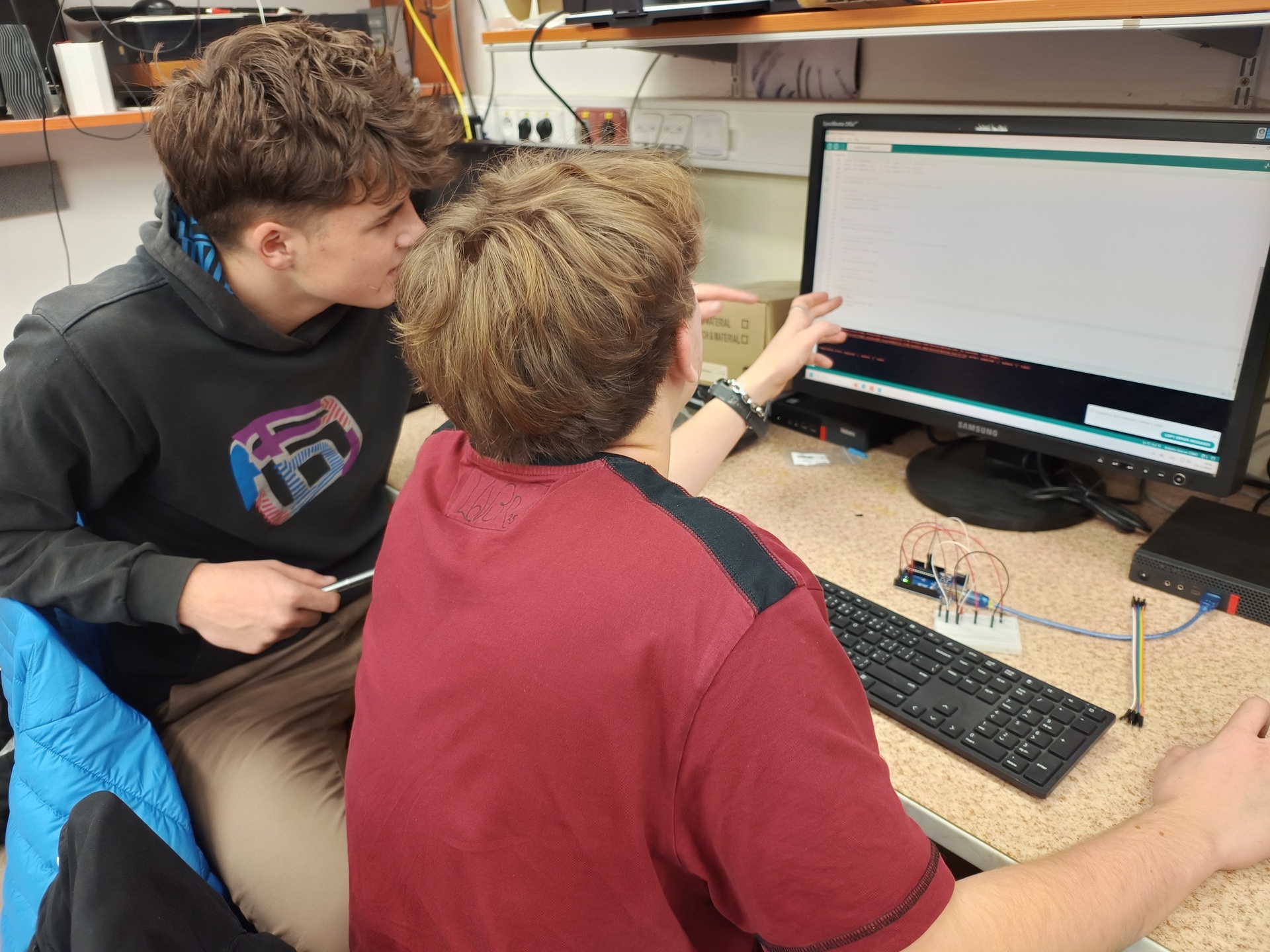 V jednoduchém programu jsme nejdřív otestovali aplikaci, která rozsvítila LED, potom jsme se naučili úpravou aplikace dvě LEDky rozsvítit a rozblikat. Základní kit na další testování si každý zúčastněný odnesl domů.