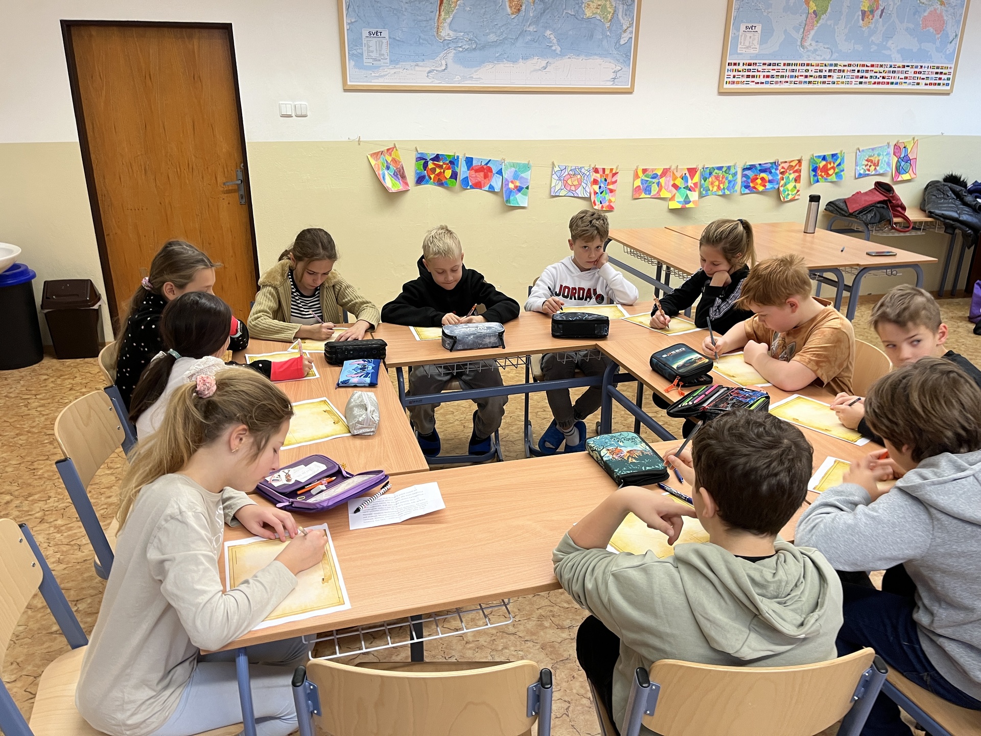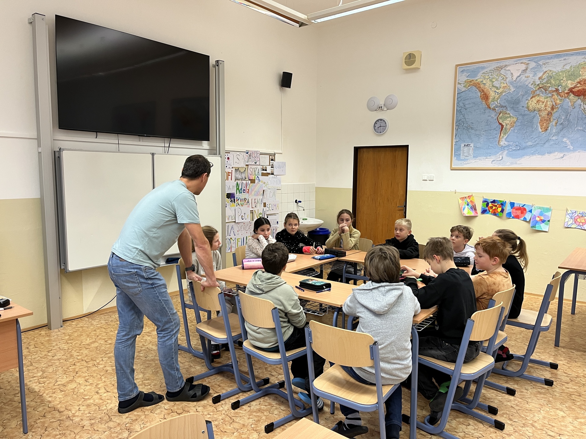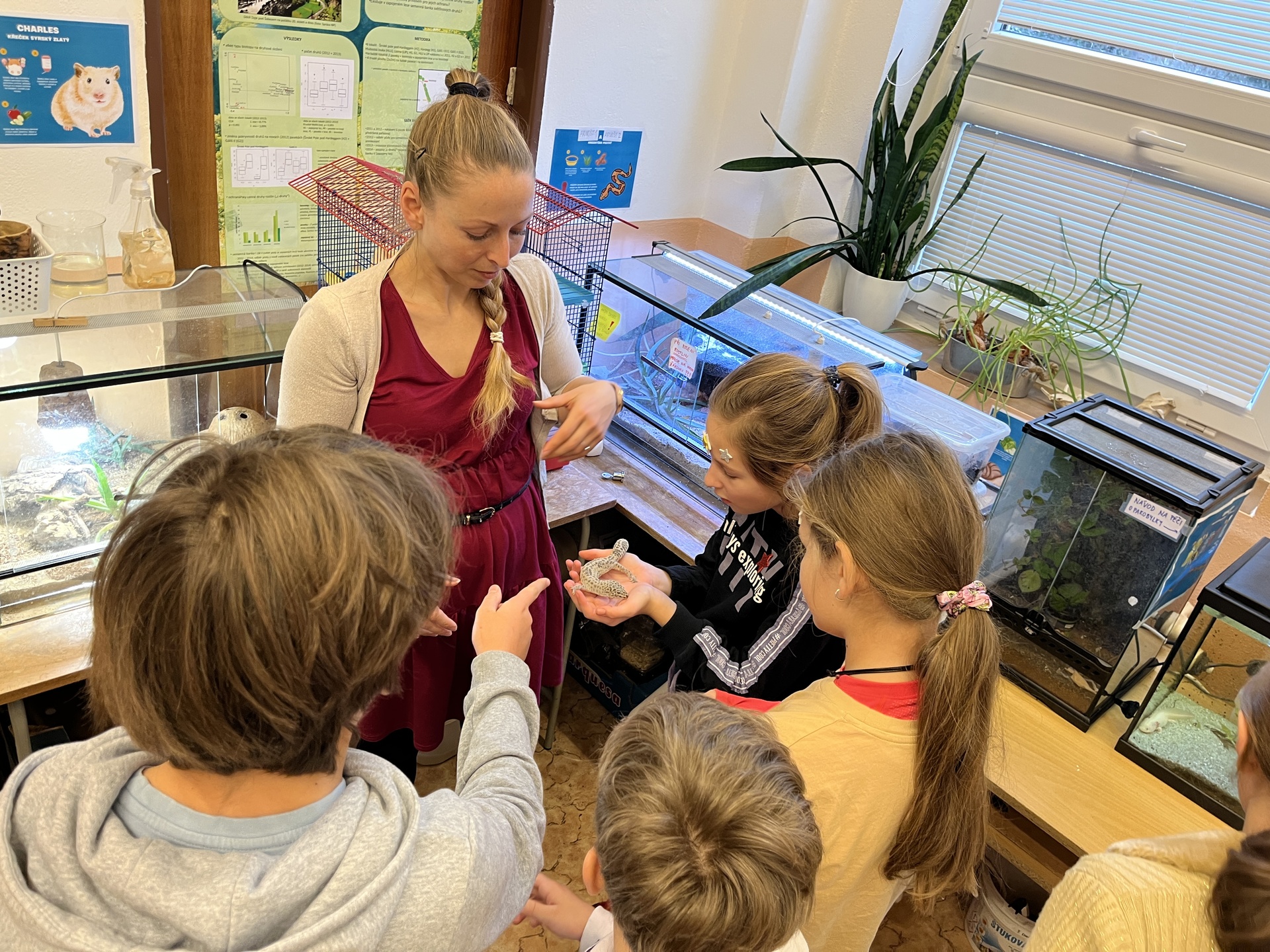 Biologie byla neméně zajímavá! Žáci se nejprve seznámili s našimi školními mazlíčky – hady jménem Arnošt1 a Artošt2, gekončíkem Flíčkem, křečkem Charlesem a pakobylkami. Poté se pustili do práce s mikroskopem, naučili se správně připravit preparát a objevovali detaily, které pouhým okem neuvidíte.