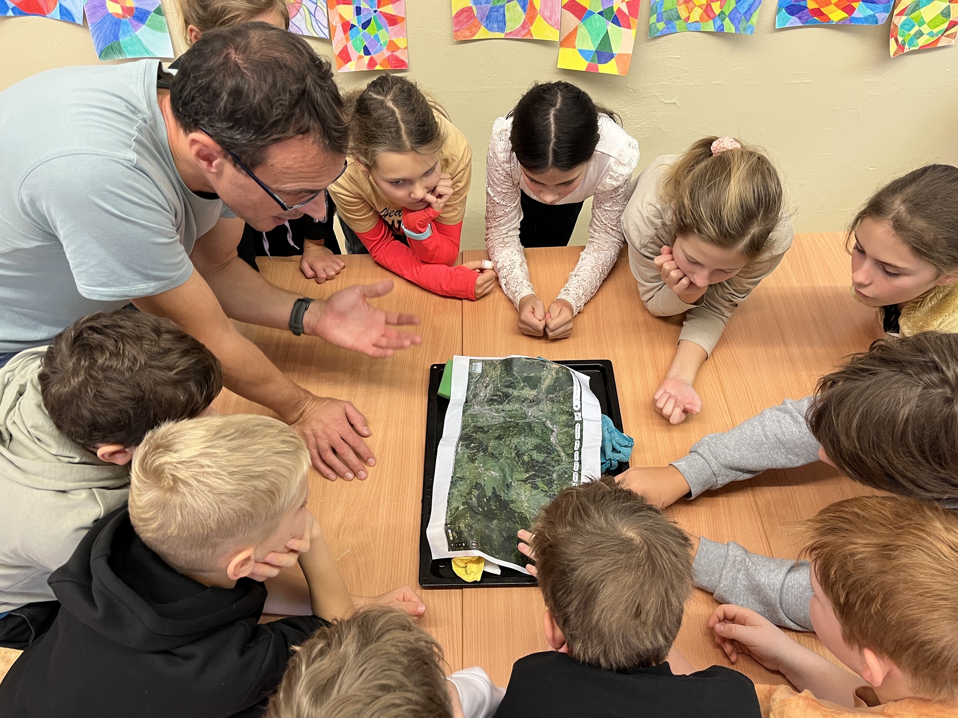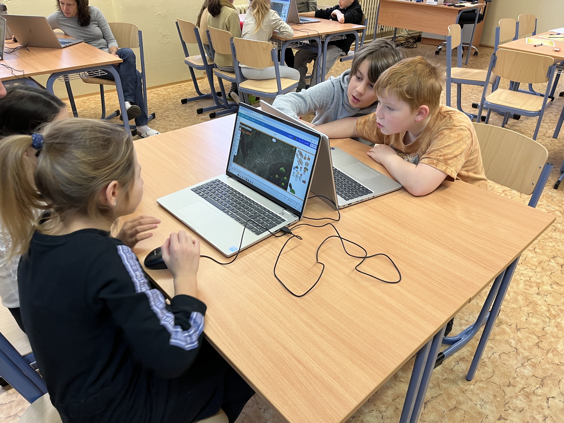 Geografickou část jsme začali únikovou hrou, která žáky provedla významem a vývojem map. Pak si každý vytvořil vlastní mapu své cesty ze ZŠ Kořenov až k nám na gymnázium. Nechybělo ani porovnávání leteckých a satelitních snímků, společná tvorba reliéfní mapy a nakonec výroba vlastní mapy okolí kořenovské školy v Canvě.