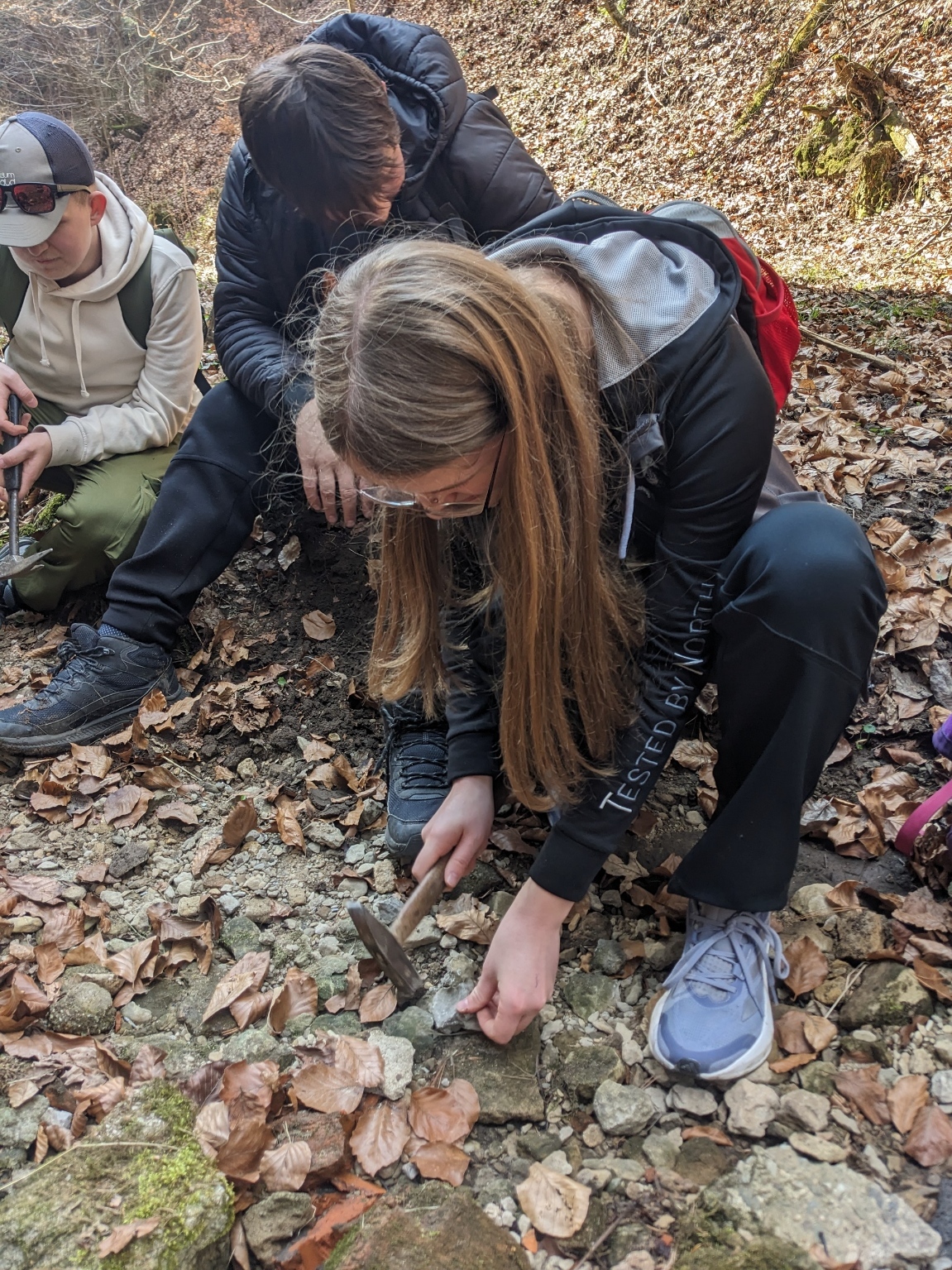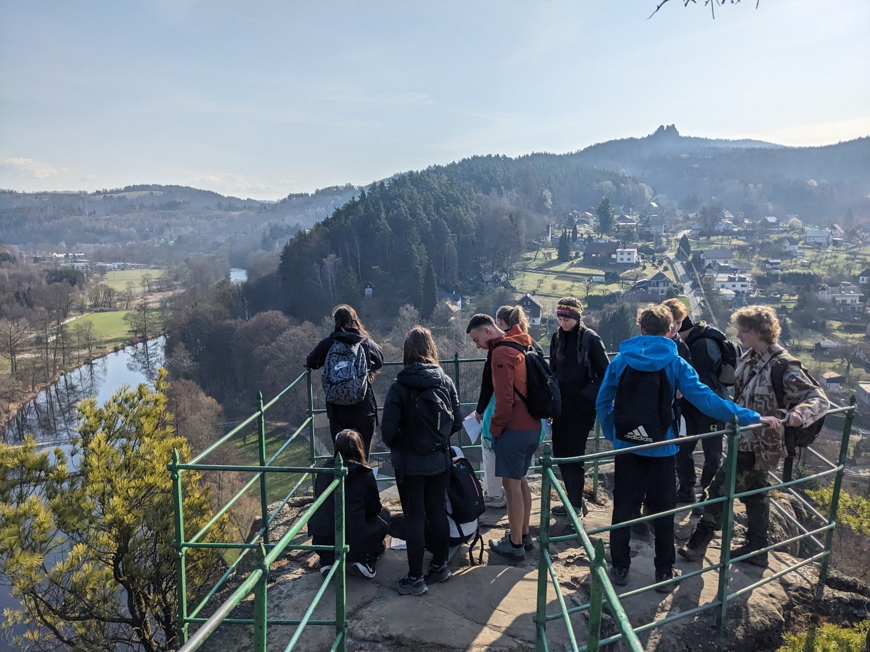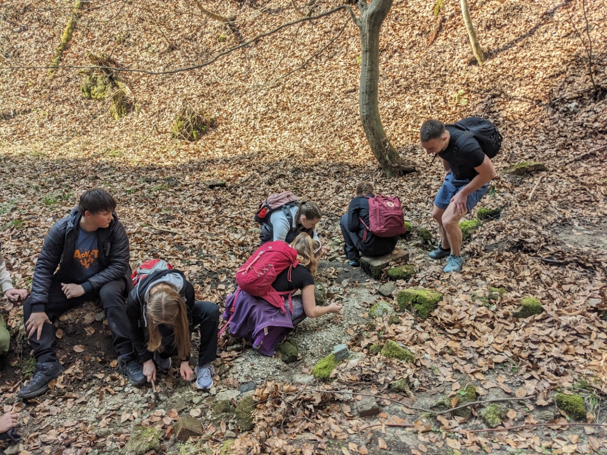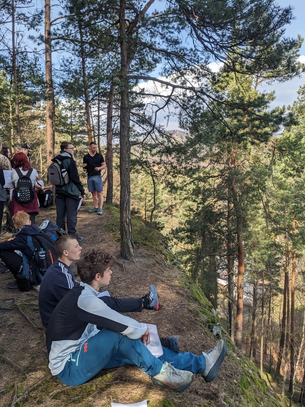 Exkurzi jsme započali na vlakovém nádraží v Tanvaldu, odkud jsme se vlakem přesunuli do Malé Skály. Po krátkém rovinatém úseku podél Jizery jsme se museli vypořádat s prvním stoupáním na vyhlídku Zahrádka. Zde žáci obdrželi pracovní list a dozvěděli se o vzniku údolí rozprostírajícího se pod nimi. Na Vranovském hřebenu si také žáci vyzkoušeli měření sklonu trhlin v pískovcích. Poté jsme po neznačených cestách přesunuli do skalního města Maloskalská Drábovna, kde musela třída v terénu najít např. skalní bránu nebo skálu s různou hrubostí pískovce. Následně jsme se vypravili k Vazoveckému potoku, kde žáci s využitím geologických kladívek úspěšně vyhledali několik desítek zkamenělých schránek živočichů. Vzhledem k rychle ubíhajícímu času jsme pak svižným tempem došli k Bartošově peci, kde proběhl poslední odborný výklad. Odtud už to bylo slabou hodinku chůze do Dolánek, kde jsme počkali na vlak, který nás s přestupem v Železném Brodě odvezl zpět do Tanvaldu. Celou exkurzi hodnotím jako velmi zdařilou a děkuji Vilémovi, budoucímu učiteli, za její bezchybnou organizaci.