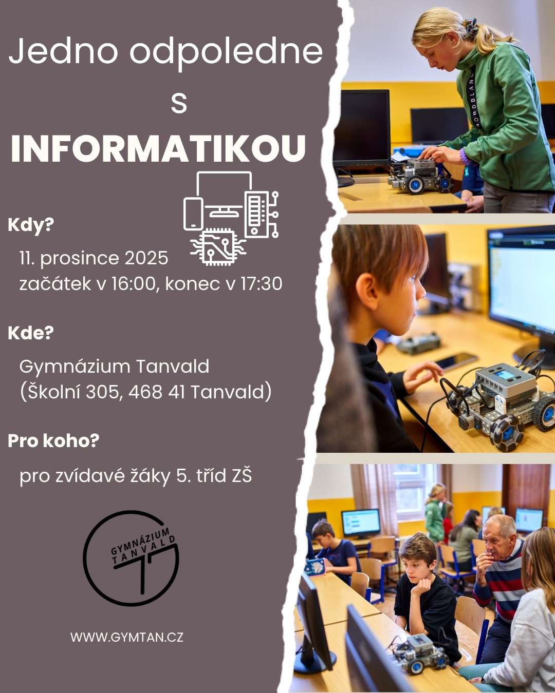 proběhne v budově Gymnázia Tanvald 11. prosince 2025 od 16:00 do 17:30 hodin.